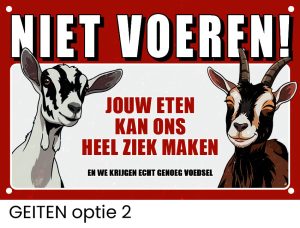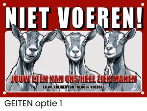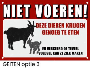 Deze bordjes zijn er in 4 variaties voor paarden maar ook aan de mensen met geiten is gedacht, daarvoor zijn er 3 variaties beschikbaar.